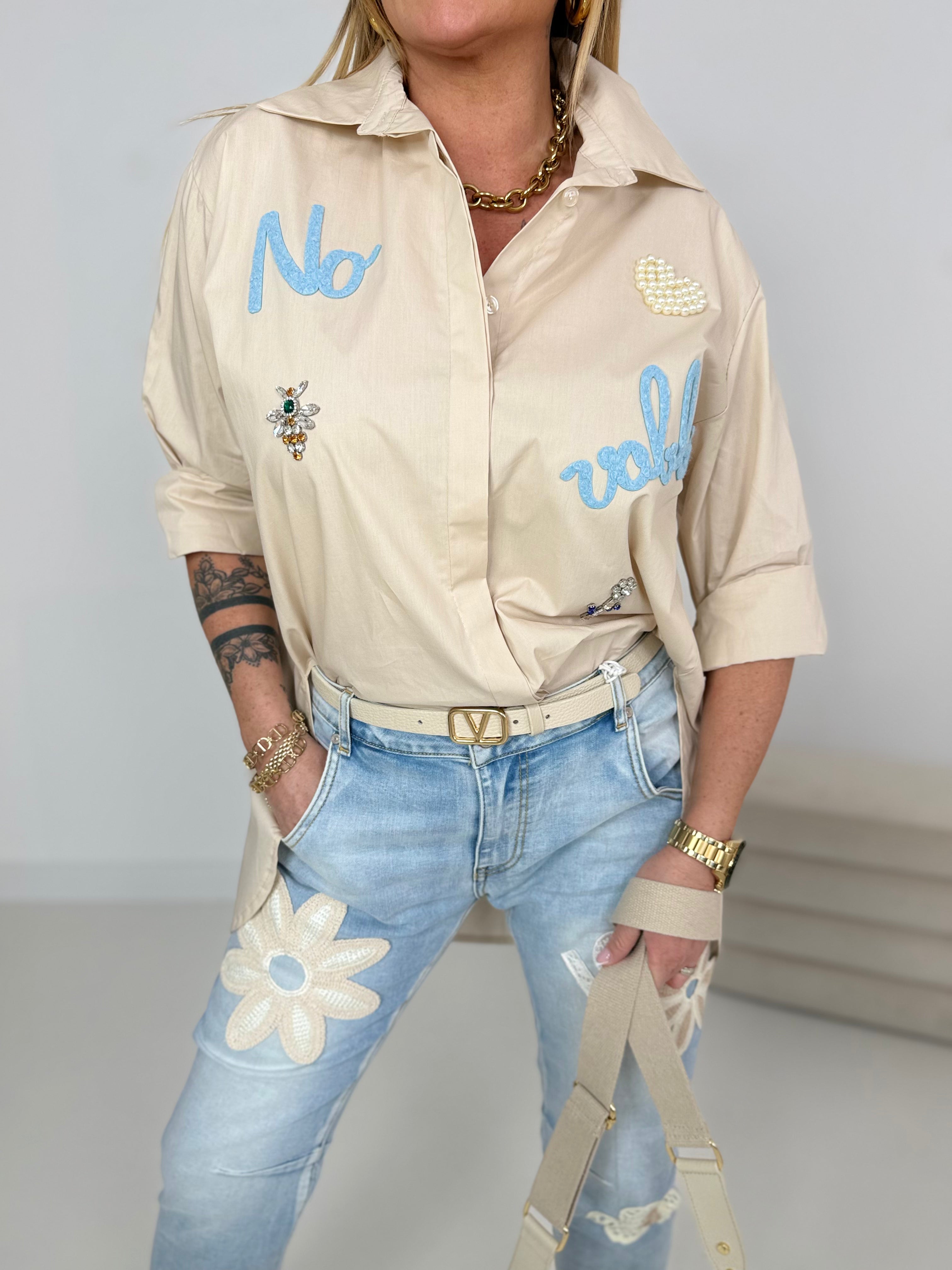 Vorne dekoriert mit Strasssteinen, Perlen & Print