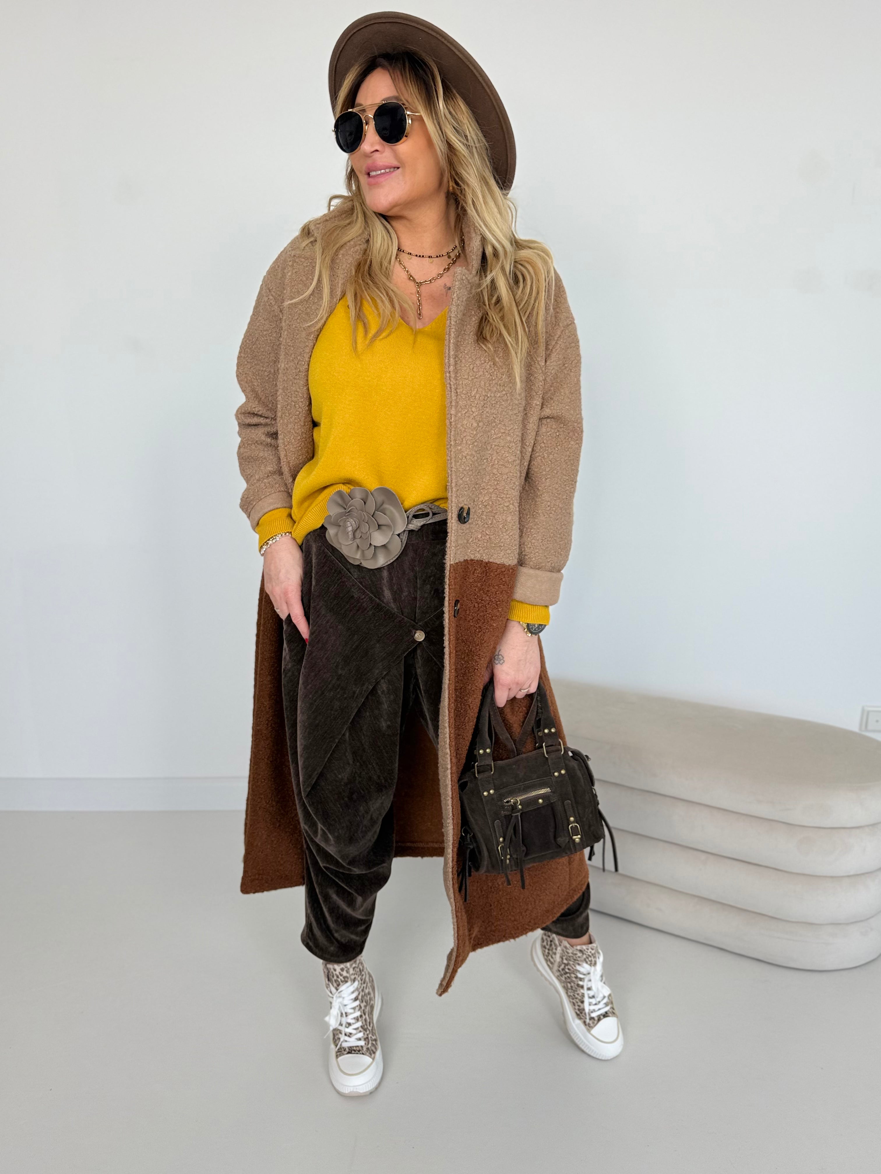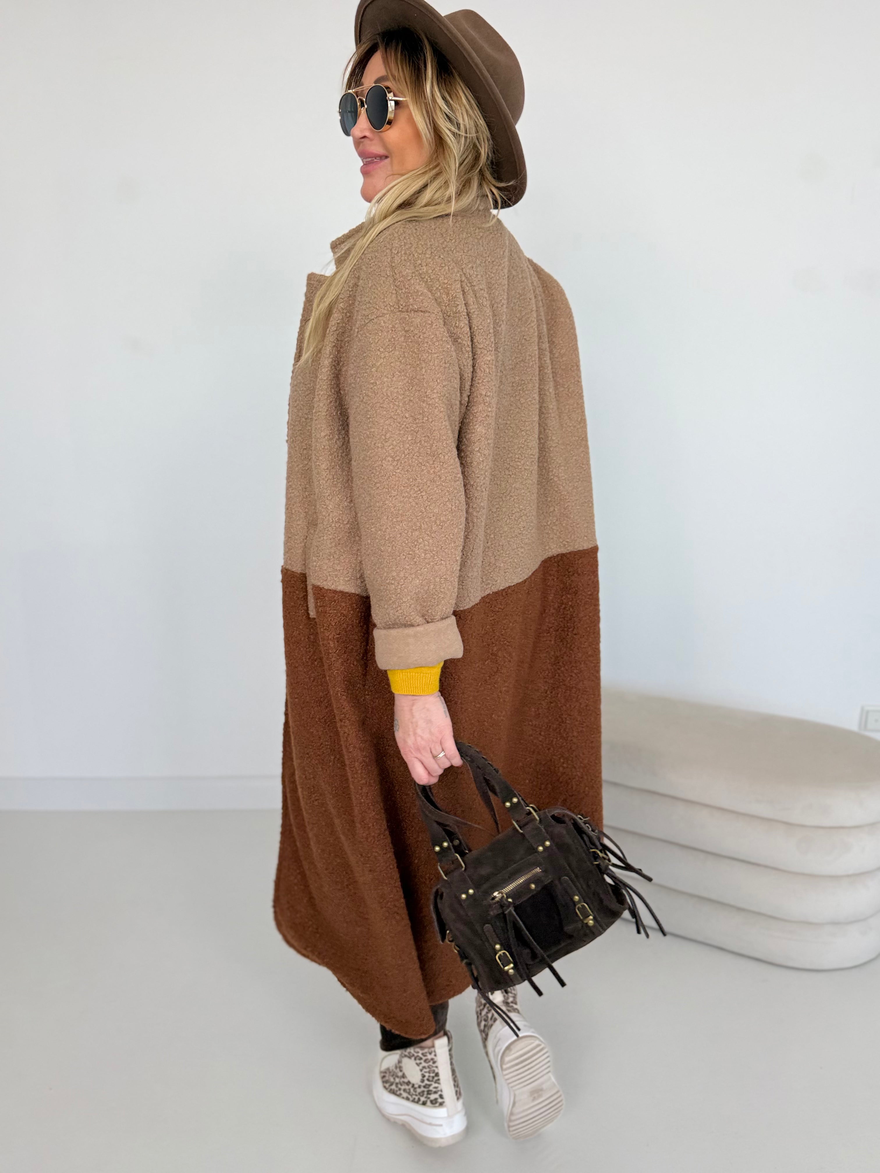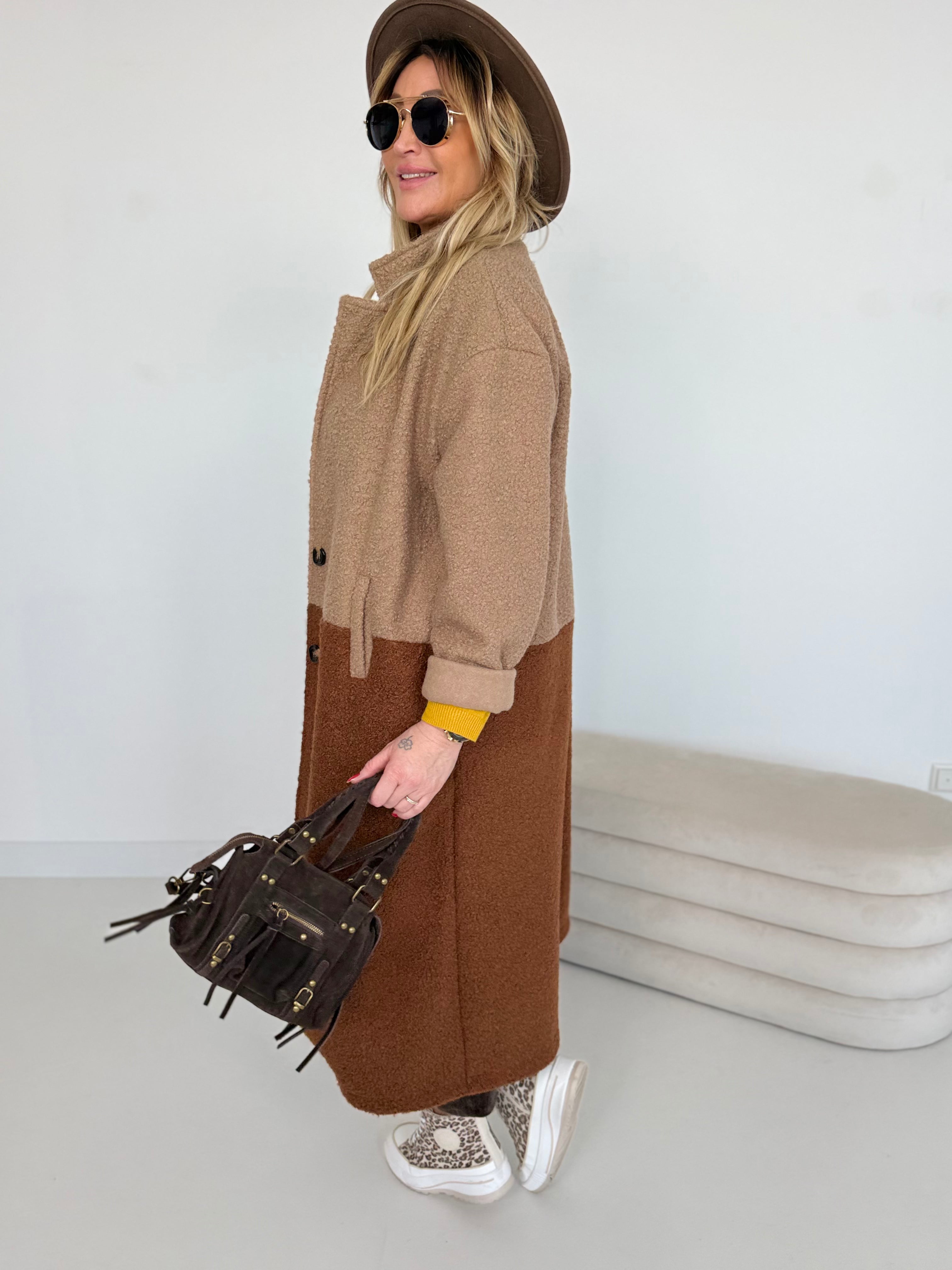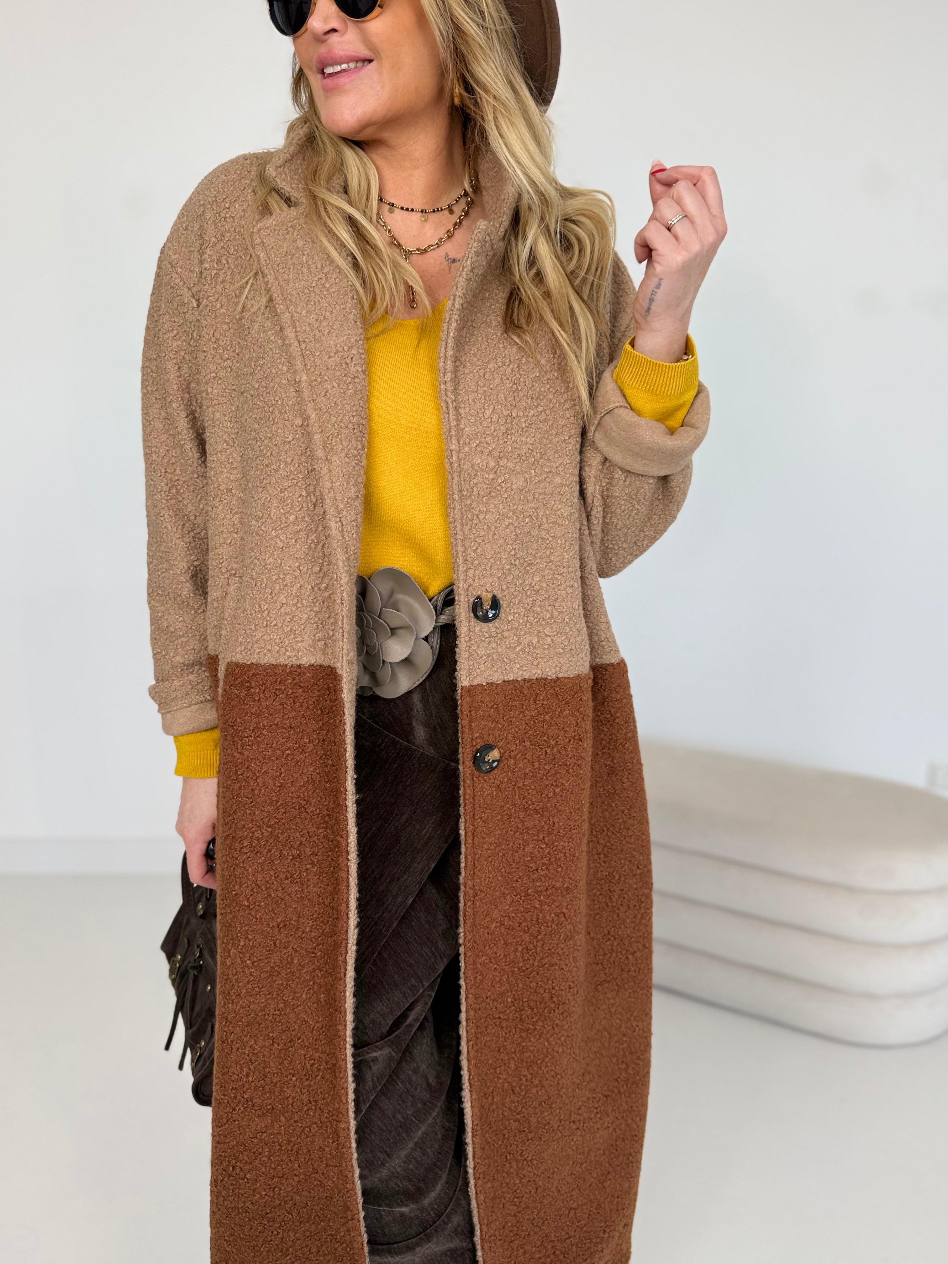 Zweifarbiger Bouclé Mantel