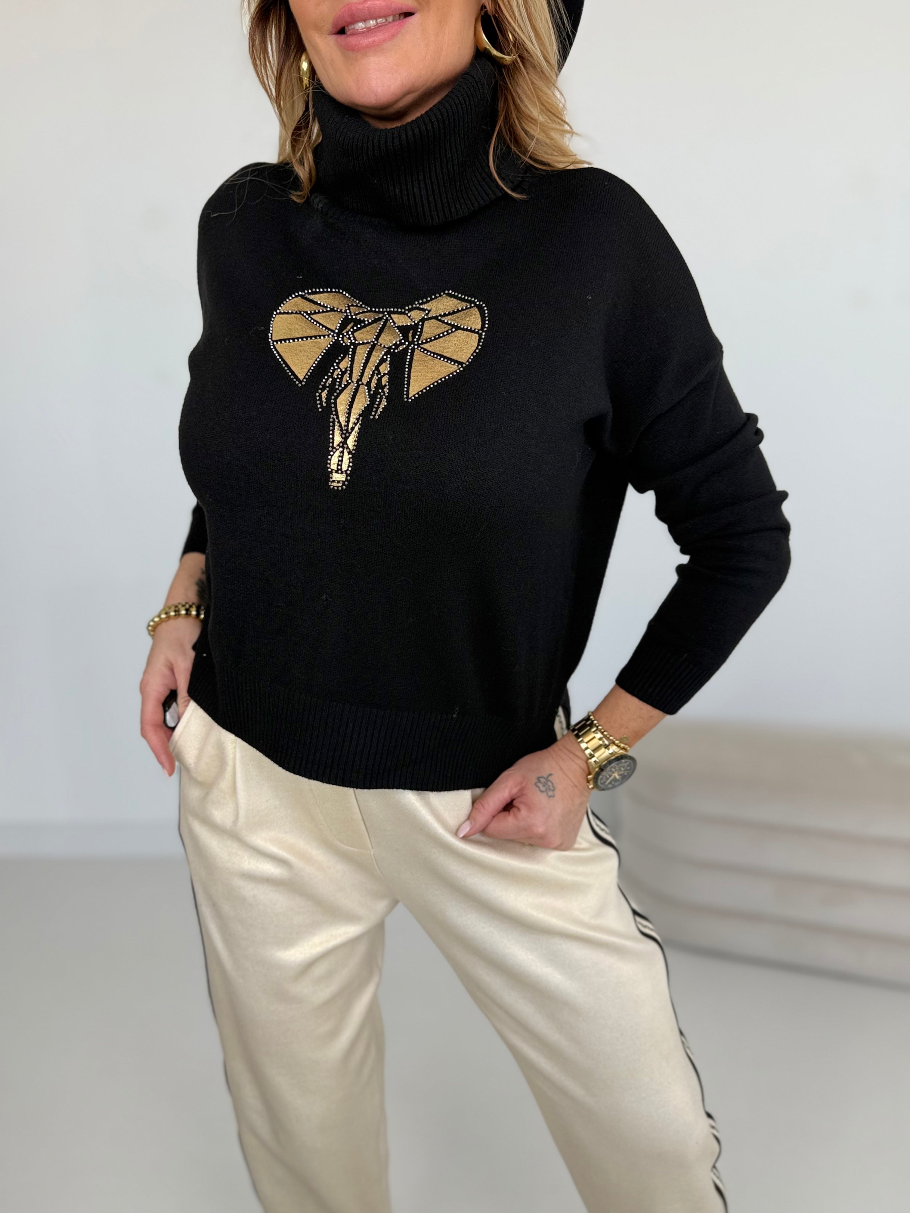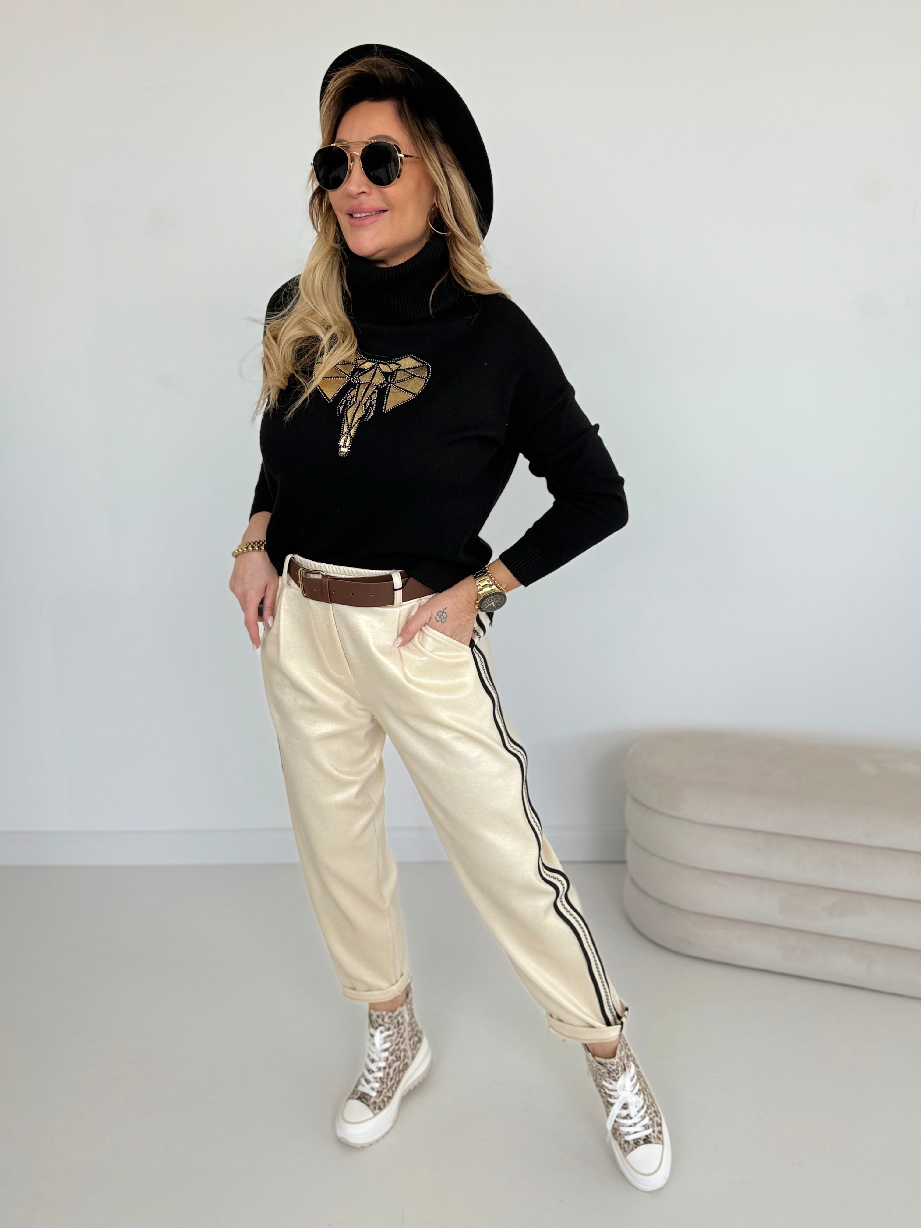 Złoty nadruk z błyszczącymi kryształkami