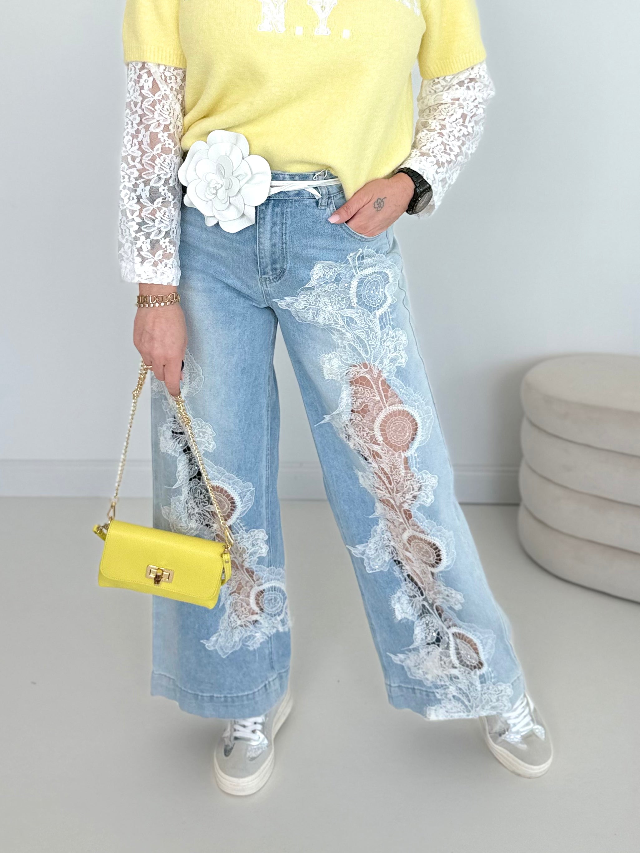 Spodnie jeansowe z koronką