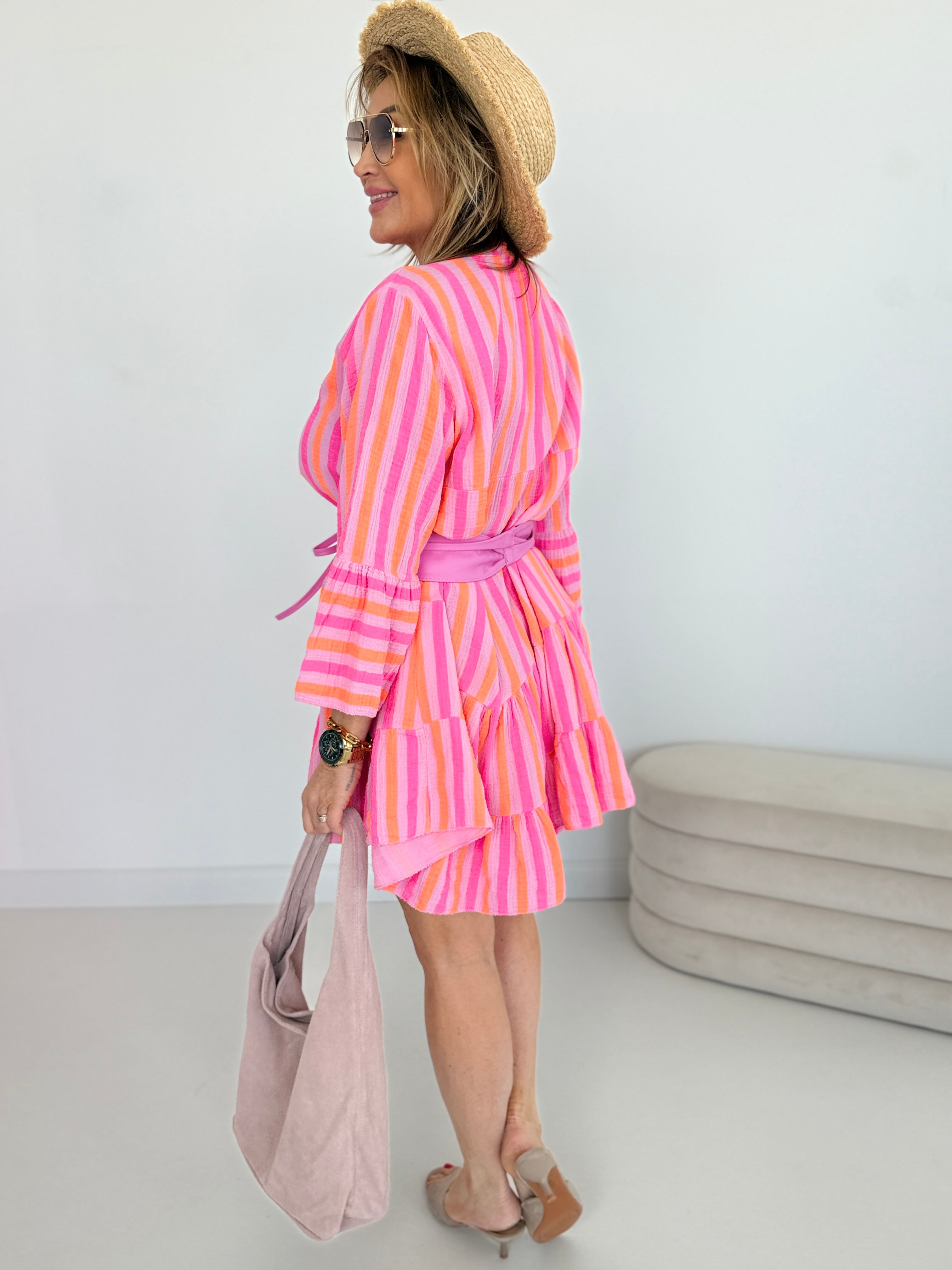 Farbe: Flieder-Neonorange-Pink gestreift