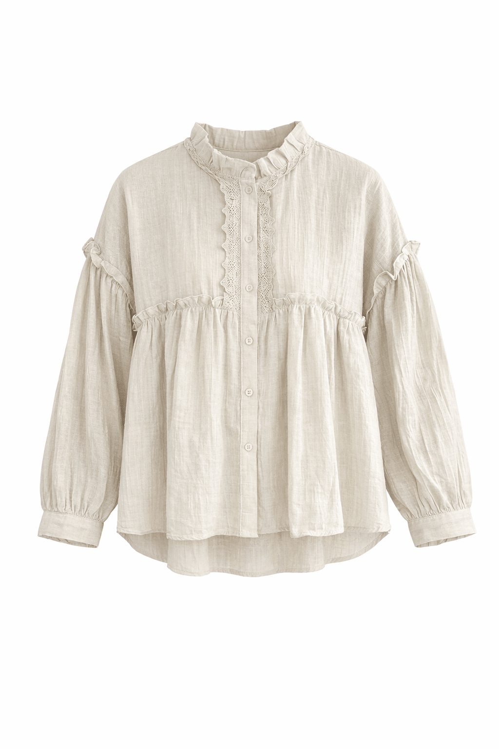 małe falbany przy kołnierzyku i z przodu