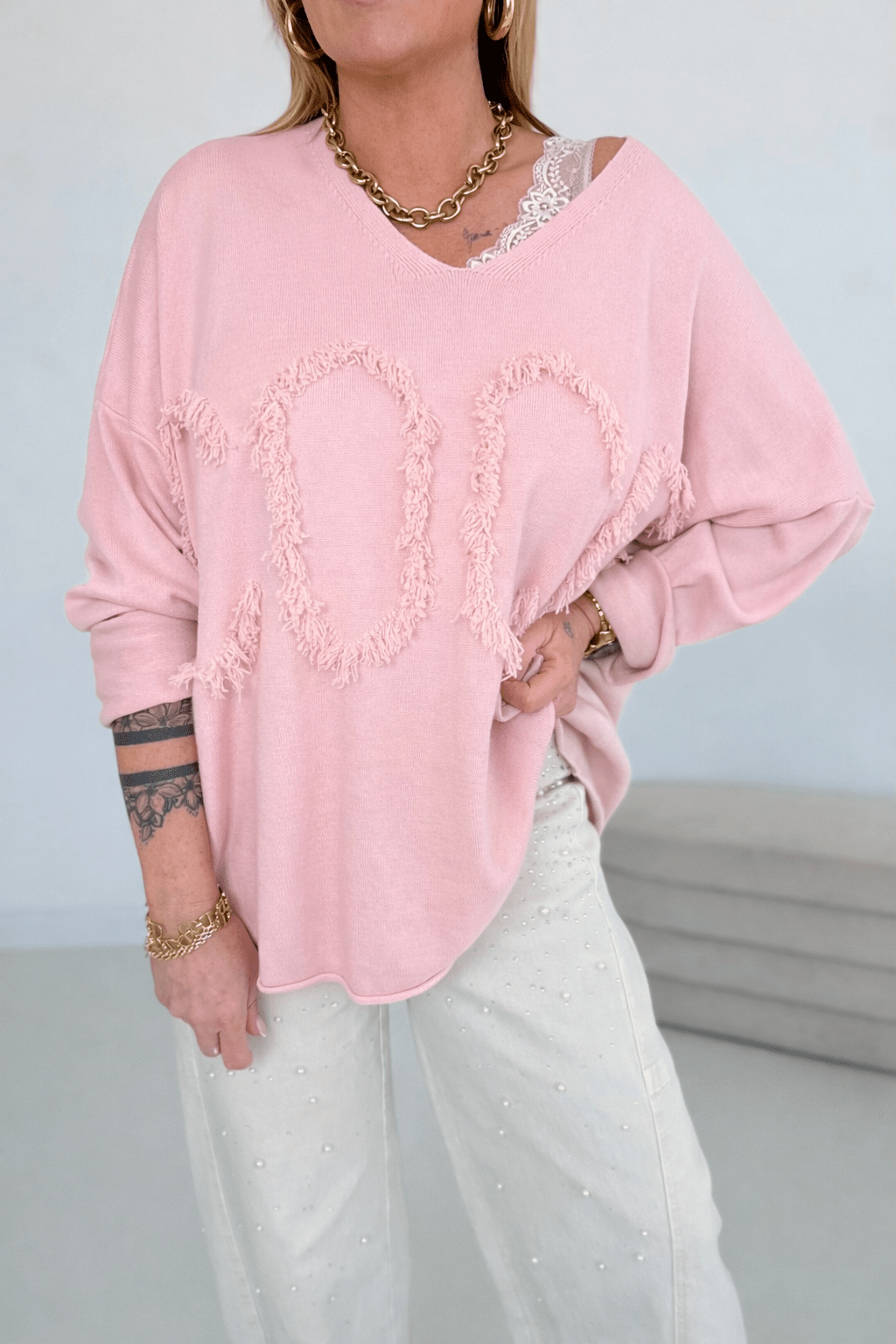 Napis z przodu z frędzlami